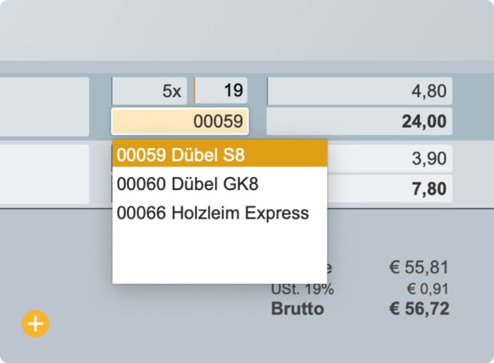 Wenn Sie mit einem festen Artikelstamm oder typischen Diensten arbeiten, können Sie diese direkt aus dem Modul Dinge importieren. Selbstverständlich können Sie Ihre Angebotspositionen aber auch ganz individuell formulieren.