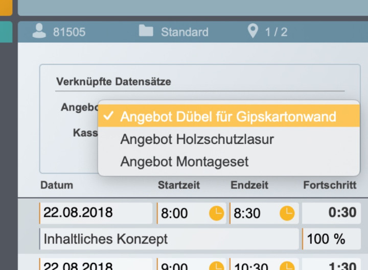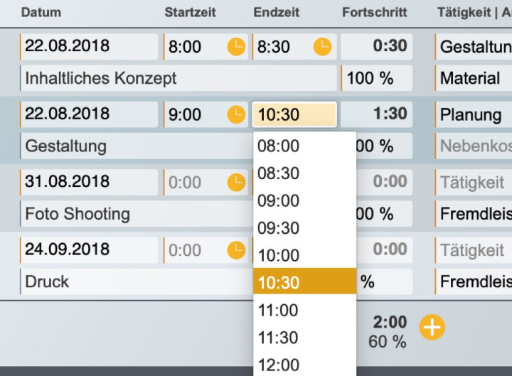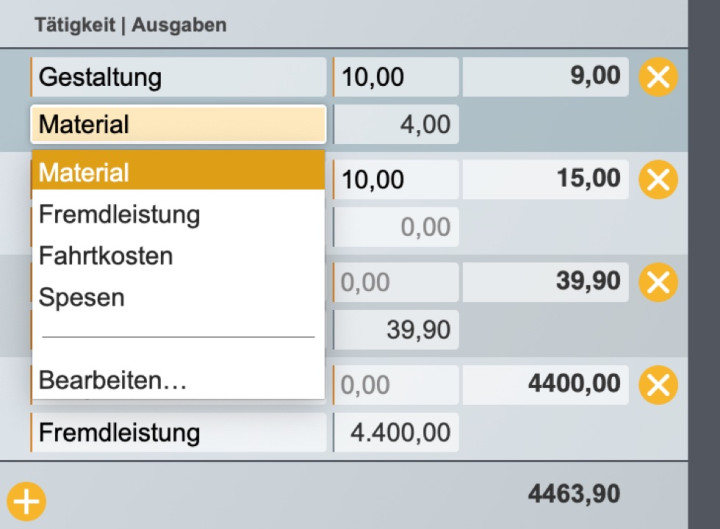 Nicht nur Ihre Arbeitszeiten und Fortschritte werden erfasst, sondern Sie können auch Fremdkosten wie Material oder Benzin berücksichtigen.